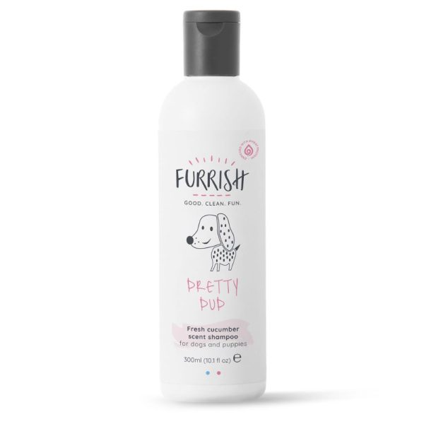 Furrish pretty pup shampoo is a mild shampoo that cleanses and nourishes puppies coats without removing natural oils whilst leaving a fresh cucumber fragrance on your pup. Thus shampoo is best suited to puppies and dogs with sensitive skin.